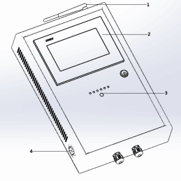 主機(jī)系統(tǒng)組成部件:1、改進(jìn)后433M無線通訊模塊;2、操作屏;3、人體紅外感應(yīng)裝置;4、語音播報(bào)裝置。